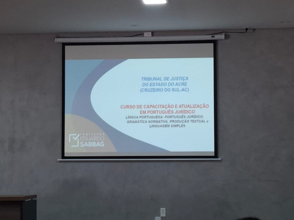 A Escola do Poder Judiciário do Acre (Esjud) promoveu o curso “Linguagem Simples: Atualização em Português Jurídico”, na comarca de Cruzeiro do Sul, com o professor Eduardo Sabbag. O objetivo da atividade – que se encerrou nesta sexta-feira (17/10) -, foi capacitar profissionais da Justiça para aplicar os princípios dessa modalidade na produção de textos jurídicos, com domínio das normas gramaticais atualizadas, ortografia e acordo ortográfico vigente.