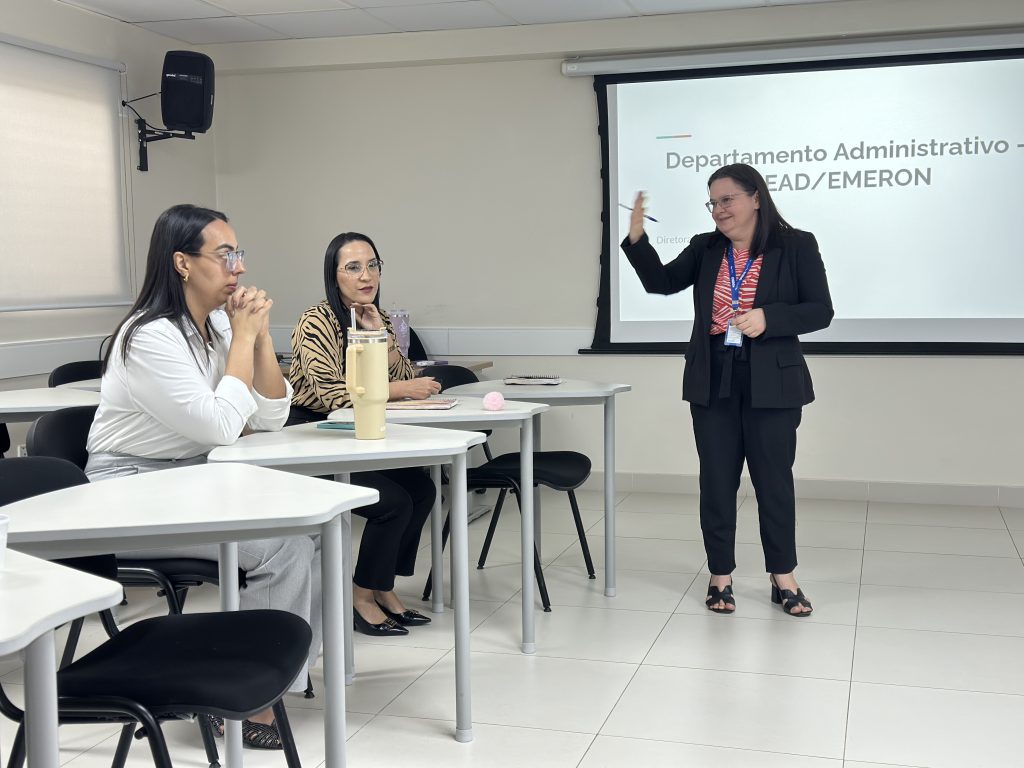 Representando a Coordenadoria de Planejamento e Gestão Educacional, Isamara Nogueira considerou o atual momento da escola que, segundo ela, passa por um processo de reestruturação. “Isso que despertou em nós novas necessidades e o desejo de repensar como podemos aprimorar nossas atividades educacionais e administrativas. Temos a Emeron como modelo de excelência e nosso principal norte, considerando sua organização eficiente e o crescente sucesso demonstrado, inclusive pela conquista do Selo Diamante no Prêmio CNJ de Qualidade”, afirmou a pedagoga.